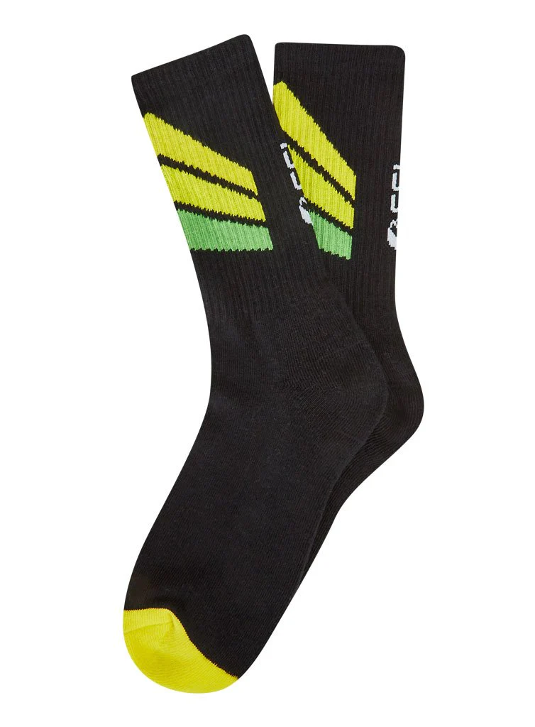 These socks are part of the collection launched to celebrate ESL's new visual identity. Featuring the green and yellow from ESL's new stand-out pattern and an understated ESL logo.